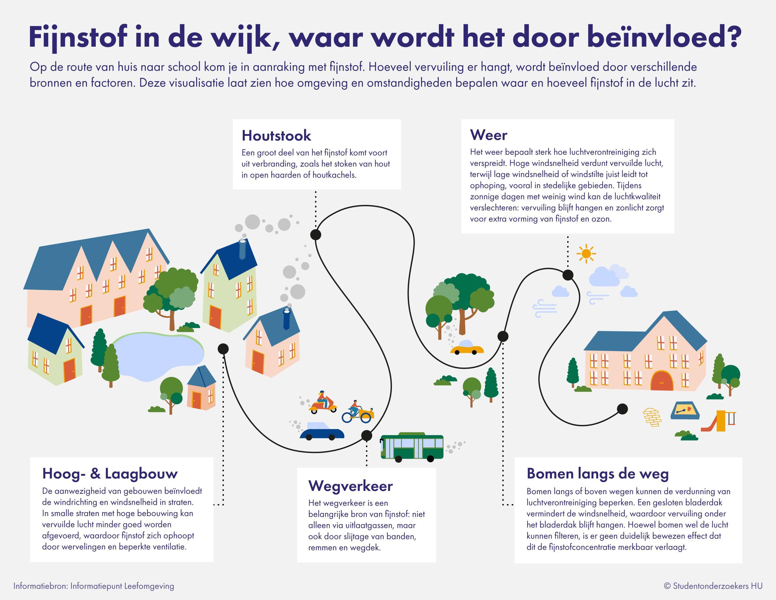 Een andere studentengroep is zelf met Snuffelfiets-kastjes op de fiets gestapt om de luchtkwaliteit rondom scholen in verschillende wijken in Gemeente Utrecht in kaart te brengen en te vergelijken. Ze vonden subtiele verschillen en maakten inzichtelijk welke factoren er allemaal meespelen bij luchtvervuiling met fijnstof.