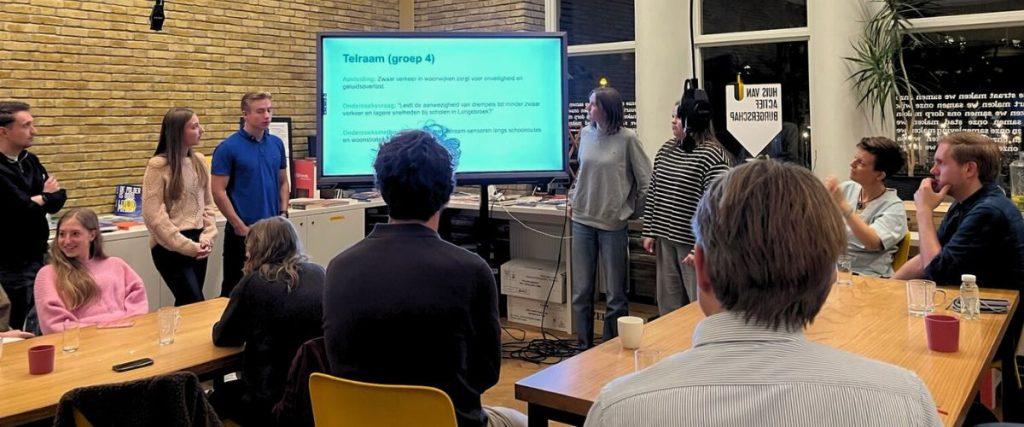 In een klaslokaal van het Leidsche Rijn College vertelden vijf VWO 4-leerlingen over hun project, gestart via U-Talent, een programma van Universiteit Utrecht en Hogeschool Utrecht. “Ons thema was Science Fair,” vertellen ze. “We begonnen met fijnstofmetingen in dieselvrije en niet-dieselvrije zones met fijnstofsensoren van Snuffelfiets. Het wachten op de data duurde lang, dus voegden we verkeersmetingen met Telraam toe.”